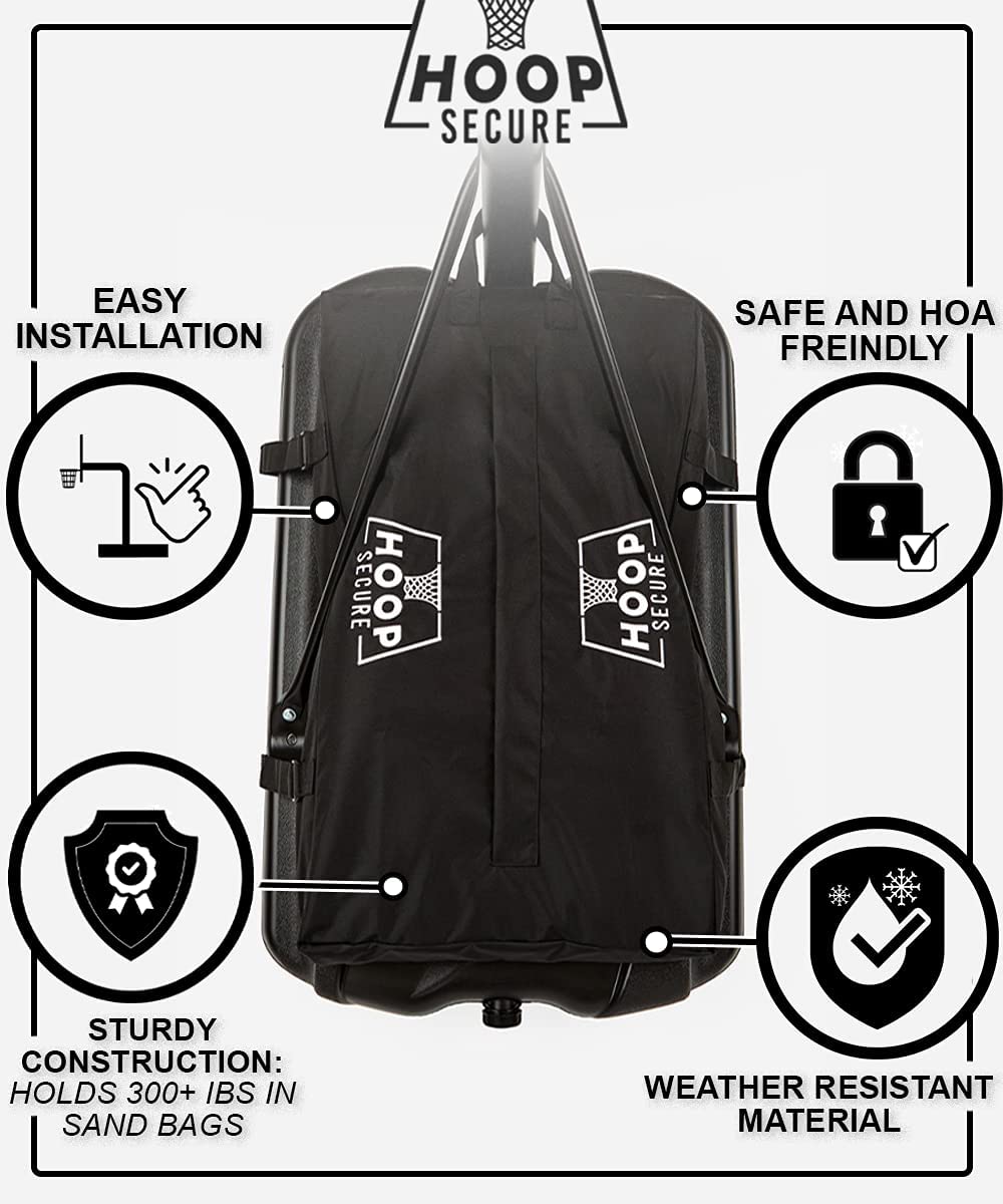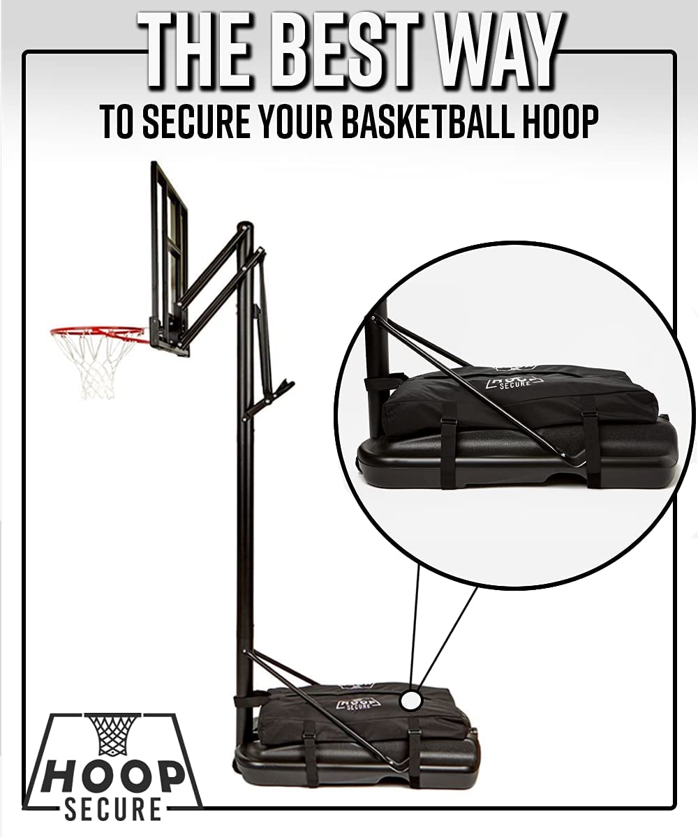 Hoop Secure is a patent-pending product that helps to secure your portable basketball hoop. It is a heavy-duty bag that can be filled with sandbags or other heavy materials to anchor down your hoop. Hoop Secure is designed to fit most standard full-size, portable basketball hoop bases.